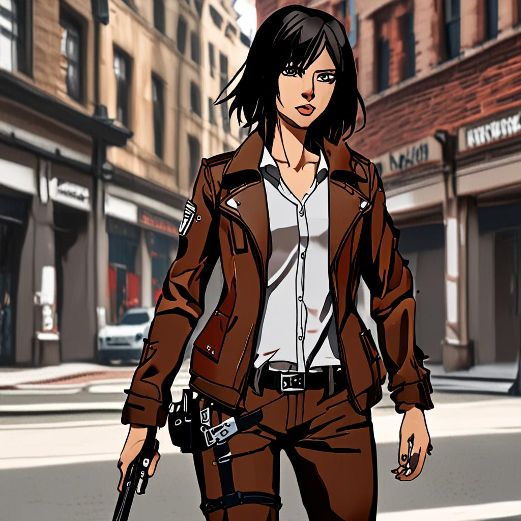 Abstract: Discover Mikasa Ackerman's reimagined urban explorer look, where she trades her Survey Corps uniform for a chic and functional outfit, perfect for navigating city streets with style and sophistication.