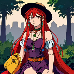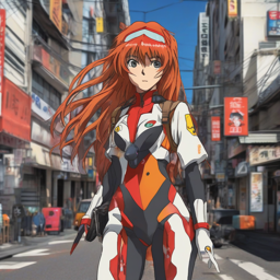 Asuka Langley Soryu from Neon Genesis Evangelion rocks a stylish bohemian outfit, trading her iconic plug suit for a vibrant, eclectic ensemble featuring a patchwork maxi dress, studded leather belt, and layered necklace, exuding confidence and self-expression as she navigates the city streets.