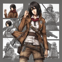 Explore a fresh, fashion-forward interpretation of Mikasa Ackerman from Attack on Titan, reimagined in a stylish and trendy outfit, complete with a sleek leather jacket, bold accessories, and a chic hairstyle and makeup look.