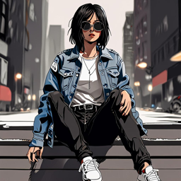 Mikasa Ackerman, the fearless warrior from Attack on Titan, trades in her Survey Corps uniform for a chic streetwear outfit, showcasing her bold and edgy side with distressed denim jeans, a graphic tee, and trendy accessories.
