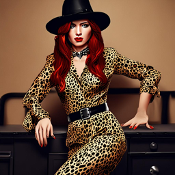 Rias Gremory from High School DxD rocks a chic leopard print jumpsuit and fedorra hat, exuding confidence and sophistication in a bold, edgy look perfect for a night out on the town.
