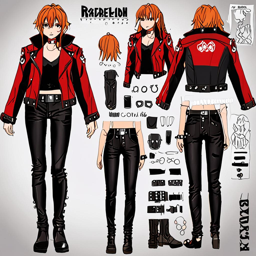 Explore Asuka Langley Soryu's bold and edgy fashion style in a reimagined scenario, where the confident pilot of Evangelion Unit-02 rocks a sleek black leather jacket, crimson red crop top, and distressed denim pants with silver studs, showcasing her tough and sophisticated personality.