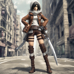 Mikasa Ackerman, the iconic heroine from Attack on Titan, reimagined in a bold Streetwear Chic outfit, trading her Survey Corps uniform for a trendy ensemble that showcases her confident and carefree personality, blending her tough warrior persona with a fresh, fashionable look.