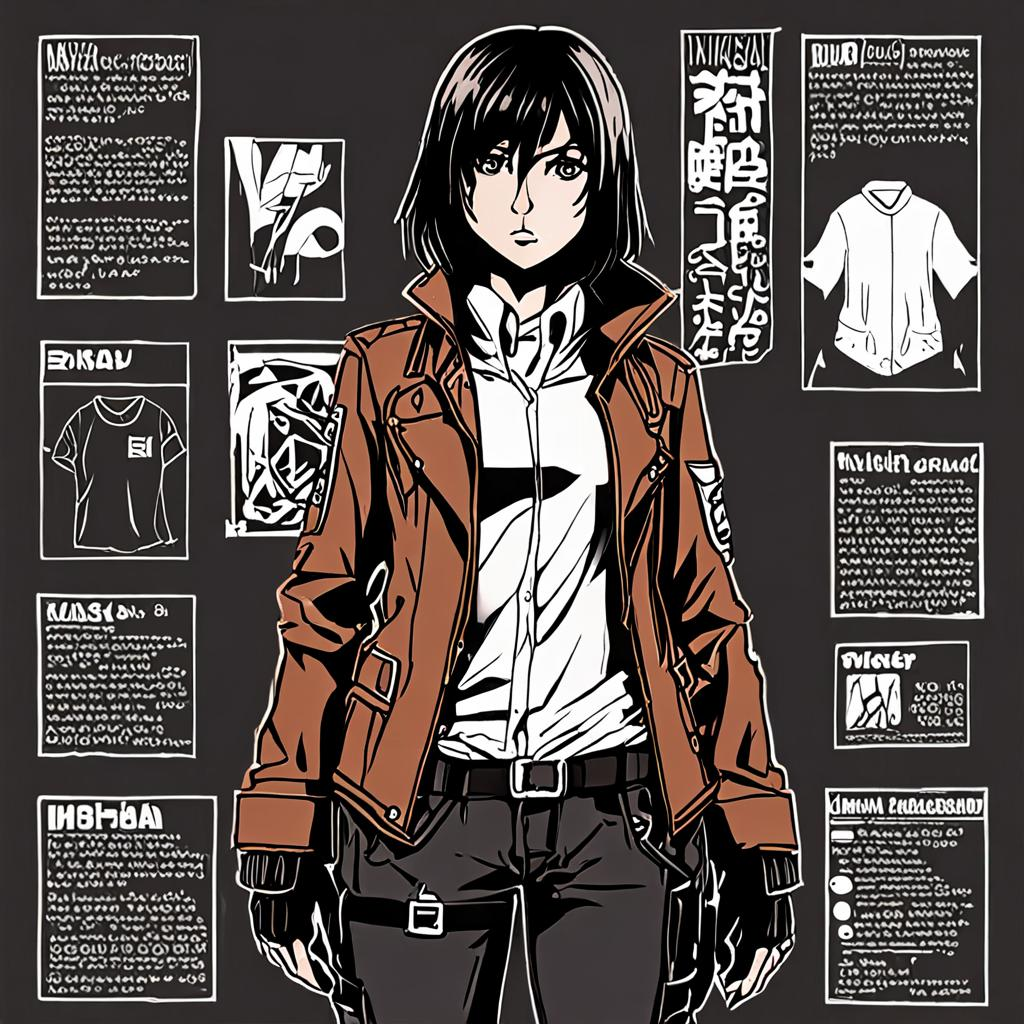 Dans un départ audacieux de son uniforme du Corps d'Exploration, Mikasa Ackerman, la célèbre héroïne de la série d'anime à succès Attack on Titan, abandonne son armure stoïque et adopte le monde du streetwear. Alors que nous nous aventurons dans le domaine de l'anime et de la mode, nous sommes ravis de révéler le nouveau look tendance de Mikasa, expertement conçu pour mettre en valeur sa personnalité sans peur et son style osé.
