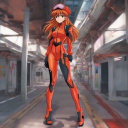 Asuka Langley Soryu de Neon Genesis Evangelion arbore une tenue de streetwear tendance, échangeant sa combinaison de plug pour un t-shirt graphique, des jeans déchirés et des baskets élégantes, reflétant parfaitement sa personnalité audacieuse et confiante avec des accessoires audacieux et un sens de la mode osé.
