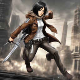 ヒットアニメ『進撃の巨人』から、ミカサ・アッカーマンの新たな側面が見られる。彼女はシ-ciっとした黒のレザージャケット、ニギネット vetorを履いている。戦闘靴を履き、强硬さと女性らしさを大胆且つスタイルフルなファッションで融合しています。