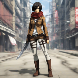 アタック・オン・トイトンのミカサ・アッカーマンがトレンドのストリートウェアの衣装に再構想。大胆なデニムジャケット、 그래フィックデザインのTシャツ、そして vữngかでかっこいいエアフォース1スニーカーを身にまとい、モダンで都会的な雰囲気の中でエッジと洗練さを体現し、自信と個性を放っています。