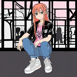 アサナ・ユウキからサードアート・オンラインから、彼女は象徴的なアーマーを華やかなストリートウェアに替えて、averyadventurous and fashion-forward personalityをMilliseconds穿着したadiansembleで紹介。それは(distressed denim jacket)のエディジタードジーンジャケット、グラフィックTシャツ、そしてすてきなスニーカーで组成的。