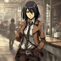 미카사 아크메르의 변신, 고집스러운 전사가 패션 아이콘으로, 할당한 사 탑을ộng을 대신하여 진sekai 모던 스타일의 옷차림으로 바꾸면서, 그녀의 개성과 성격을 곁들여하며, 그녀의 패션 선택이 문화적 사회적 의미를 탐구하는 모습.