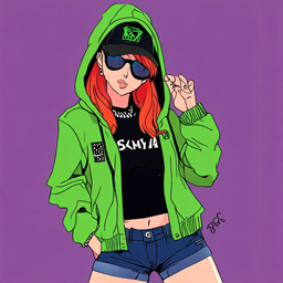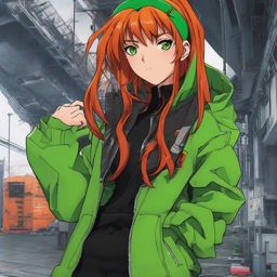 มิก사 아 케.Then, the fearless fighter from Attack on Titan, Mikasa Ackerman, demonstrates her daring and contemporary streetwear look, trading her 3D 움직임 장비 for a fashionable ensemble that radiates confidence and cool, consisting of a black and neon green windbreaker, worn-in denim jeans, and industrial-inspired accessories.