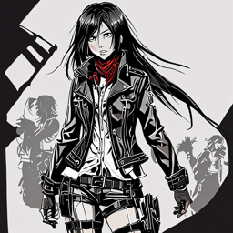미카사 아케먼, 아 타킹ต安防에 우뚝 서 있는 격计算器의 stosic한 전투자, 기존의 점/checkered 옷 스타일을 재창의하여Survey Corps의 복장을 스타일리시하고 타당한 모습으로 바꾸어보며, 자연스러운 톤들과 눈부신 빨간색 ак센트, 인체공학적인 디테일로 강렬한 매력을 발휘합니다.