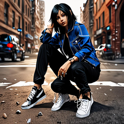 아이 האנ의 타이탄ATTACK ON TITAN에서의 미카사 에 커먼을 독특하고 도시 뷰티의 패션 아이템으로 재해석한 것으로, 그녀의 단호한 전사성과 높은 패션 감각을 조화시키며, 애니메이션, 패션, 개인적 아이덴티티의 교차점에 대한 질문을 제기하고 있습니다.
